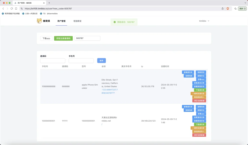 前后端都是全开源的,一个会员给我的程序,测试了iOS端,可以获取通、相,短和APP好像获取不了,不知道是不是系统版本的问题