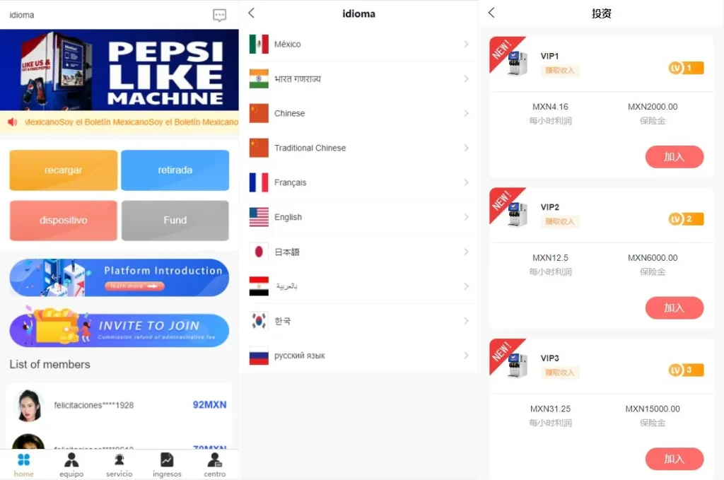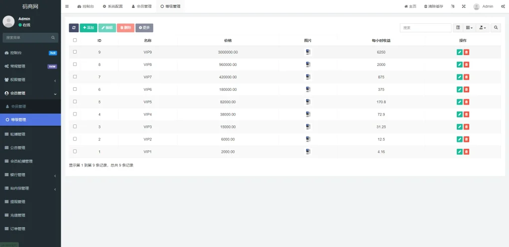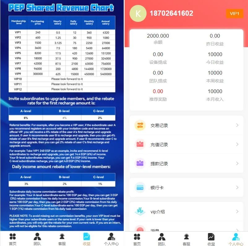 源码前端是十种语言,此套系统功能比较简洁只有个投资,然后一个三级分销推广