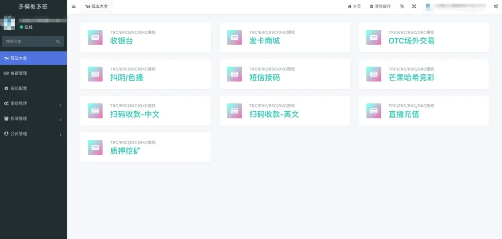 多模板多签授权盗u秒u源码/单控多控修改用户地址权限/TG鱼苗通知/地址交易监听/发卡商城+短信接码+扫码充值+直播币充值+OTC场外交易+质押挖矿+抖音色播