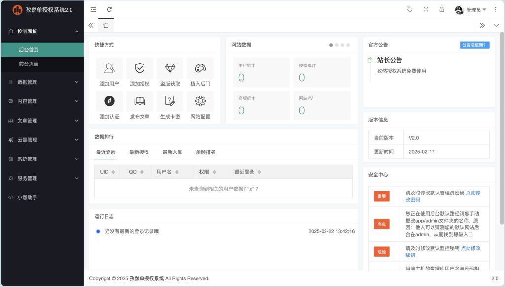 孜然单授权V2.0系统,延续了2022年开发的孜然多应用授权系统V1.0