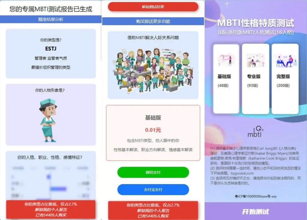 运营级MBTI十六型人格职业性格测试源码完整版,十六型人格职业性格测试,自适应前端,代码完整无加密。环境:centos7.9宝塔+php7.4+mysql+nginx1.20 资源下载下载价格VIP专享仅限VIP下载升级VIP 0
