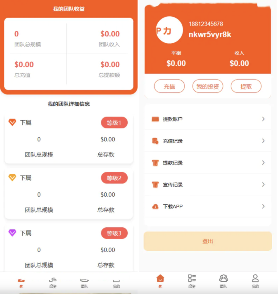 英文版海外理财投资分销源码 开源版本 对接了虚拟币充值 简单明了的一套源码