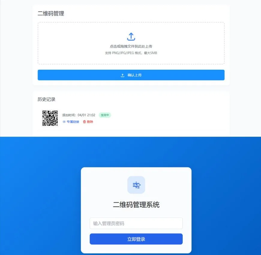轻量级PHP活码管理系统,支持二维码动态更新与过期自动失效。 技术特点: 无数据库依赖,JSON存储数据 后台管理密码加密验证 自适应移动/PC端展示 7天自动过期机制 适用于短期活动、临时群组等场景,源码已开放,欢迎测试使用。 代码简单小白也可上手、可以二开进行数据库添加 界面过于简洁,根据你自己的需求修改即可 资源下载下载价格VIP专享仅限VIP下载升级VIP 0