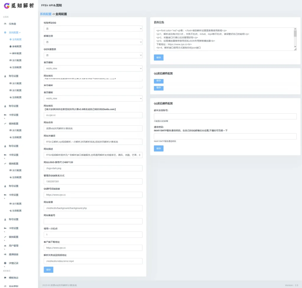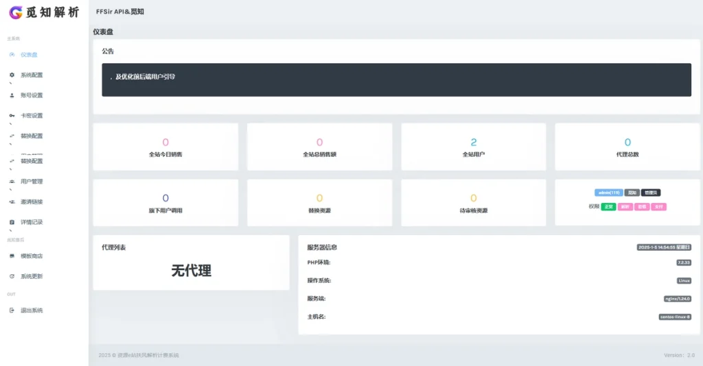 2025蛇年v2.0觅知扶风计费系统全新重制全新UI优化修复完整版解析接口计费系统也就是多接口管理销售统计系统,可配置多接口和专用特征解析接口,有替换资源系统,对接在线支付,卡密支付,支持点数收费模式和包月套餐收费模式,管理可配置多个视频解析接口、短视频接口、备用解析等等常规功能等等!此版本优点:就是完全摆脱官方束缚,他坏了倒闭了,自己还能用所有核心代码本地化, 解决外链代码响应慢的问题 PHP7.0+MYSQL5.7 此版本优点:就是完全摆脱官方束缚,他坏了倒闭了,自己还能用,所有核心代码本地...
