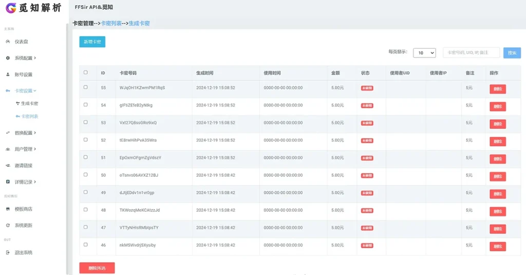 5、新增卡密充值功能,方便一些朋友没有支付接口通过卡密给用户充值;