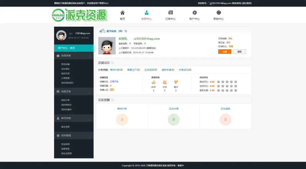 - 交易记录:展示用户的所有交易记录,包括域名购买、出售、提现等明细。