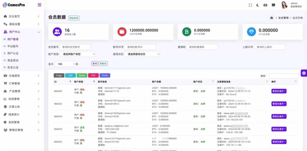 这些都可以设置期权交易属性,还有杠杆交易、质押这些功能,外汇和股票可以需要换接口控制的话没有测试,就连k线都不需要你配置服务器环境,只要服务器ip在火必允许的名单内,前端可以直接调用k线数据,对于新手比较友好控制分为用户场控(全赢、全输、涨赢跌随机、跌赢涨随机、涨赢跌输、跌赢涨输),杠杆交易也可以控输赢另外这一套可以设置任何币种为平台币,后台有设置平台币k线,我没找到在哪里,你们自己研究一下前端还有试玩账号登录,这个也有卖点,解决了用户体验时需要注册的繁琐过程