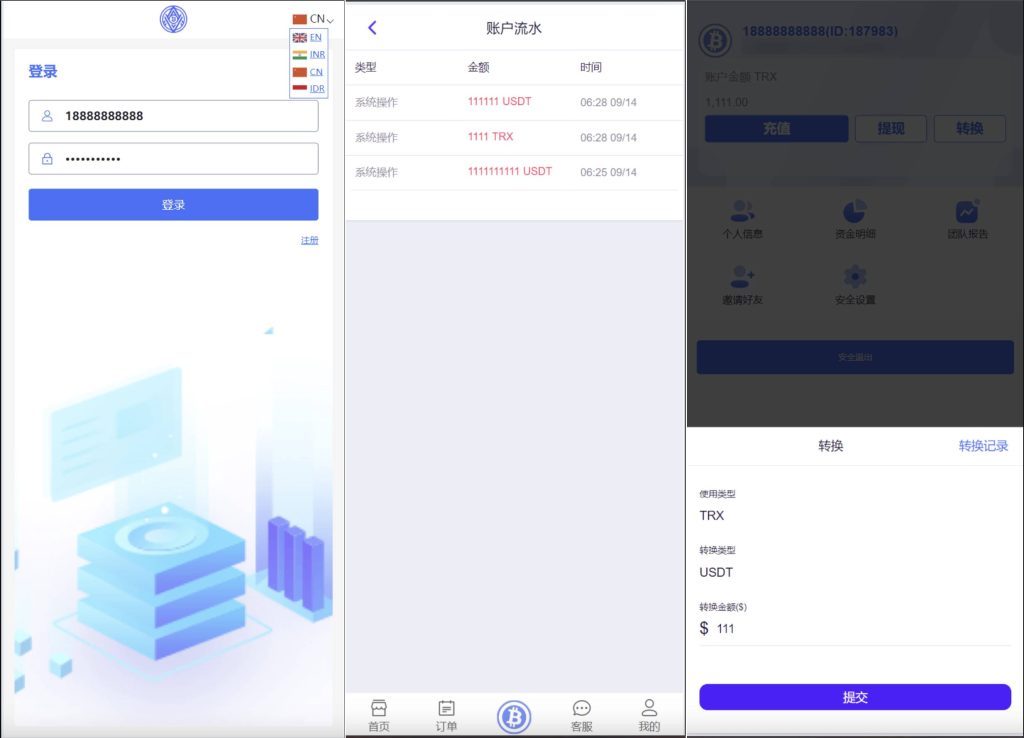 TRX虚拟币矿机源码/区块链矿机交易系统源码/4国语言+usdt充值+搭建视频教程