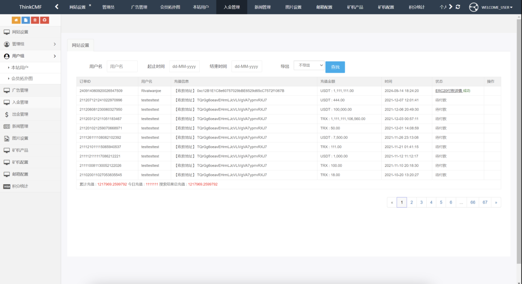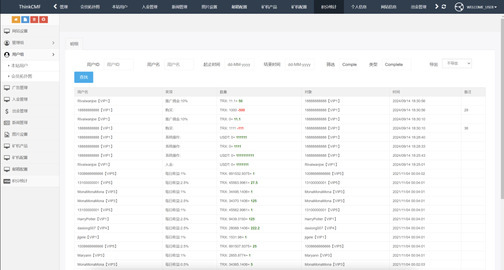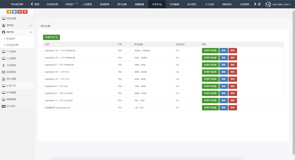 一款ThinkCMF开发的TRX矿机源码,完美运营级别,4国语言、usdt充值还不错,可以研究下